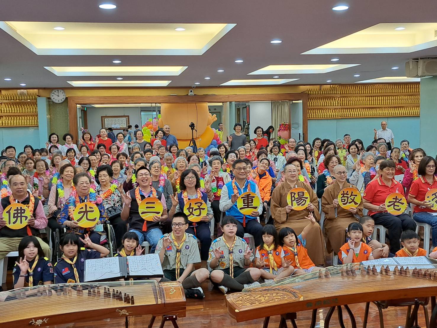重陽節前夕,佛光山三重禪淨中心特別於26日舉辦「佛光三好、重陽敬老」活動,有200多位長者在家人的陪同下歡喜參加,除有古箏、吉祥鼓、排舞表演,並有中西醫義診、整復保健、義剪頭髮,甚至由醫甲館專為長輩修剪腳趾甲。佛光幼童軍和青年團員們為長者跪膝奉茶,以彰顯傳統重陽敬老的美德。