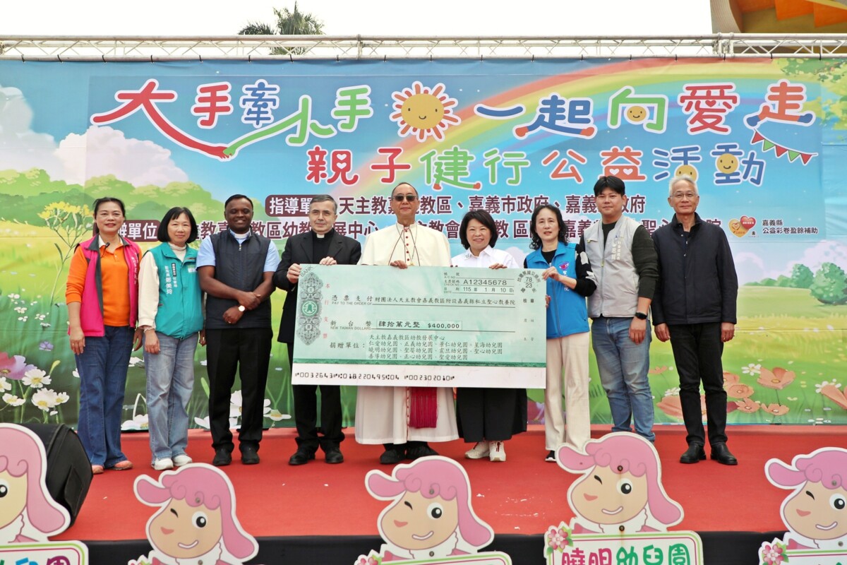 【記者 吳瑞興/嘉義市 報導】為協助聖心教養院汰換老舊冷暖氣設備,天主教嘉義教區幼教發展中心結合各合作園所,以「天主的愛」為核心,推動生命教育課程與「愛心撲滿募集活動」。幼兒們將父母給予的零用錢存入撲滿,以實際行動學習分享與付出。今(10)日於嘉義公園舉辦「大手牽小手、一起向愛走」親子公益健行活動,在黃敏惠市長、天主教嘉義教區大家長浦英雄主教、教廷駐台代表馬德範蒙席 (Stefano Mazzotti)代辦及貴賓的見證下,由園長與幼兒代表捐贈予聖心教養院。本次活動共發出1,500多個愛心撲滿,募集善款新臺幣40萬元,黃敏惠市長也代表全體市民捐贈5萬元予聖心教養院,期望為孩子傳遞愛與溫暖。